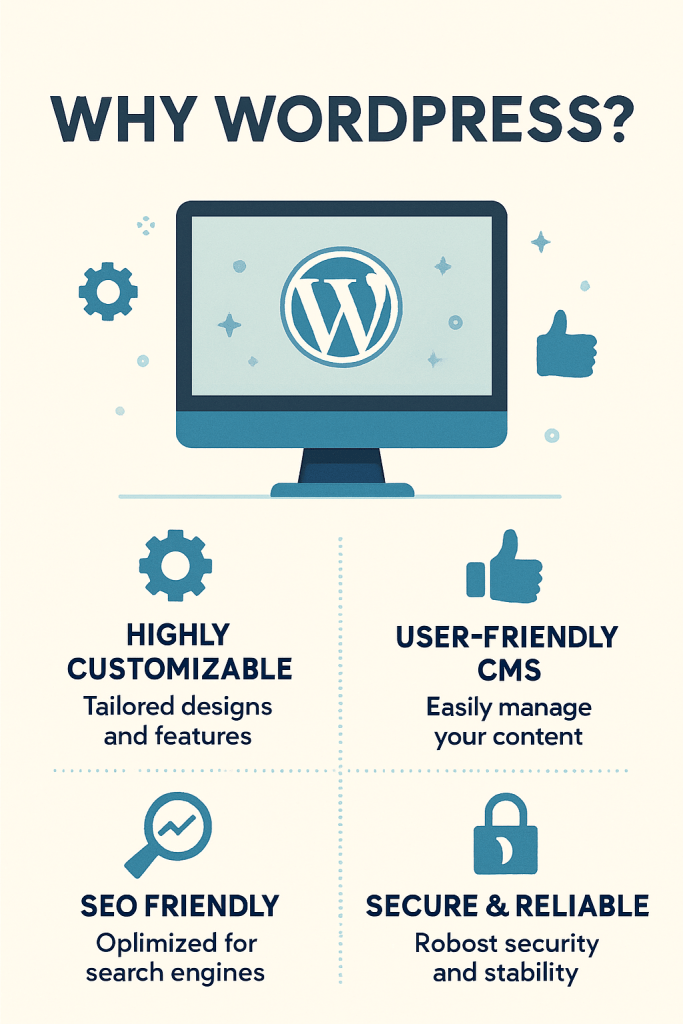 Secure & Reliable – We build with best practices, firewalls, and backups to keep your site protected.